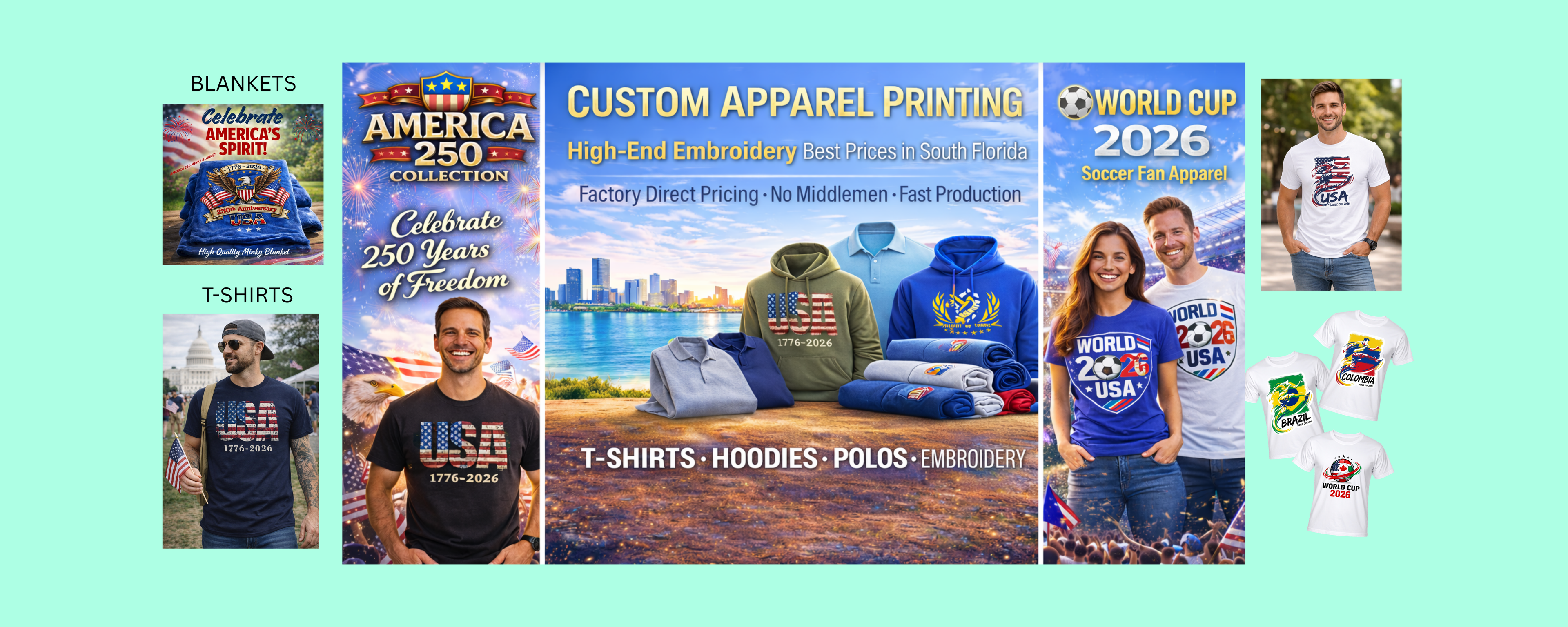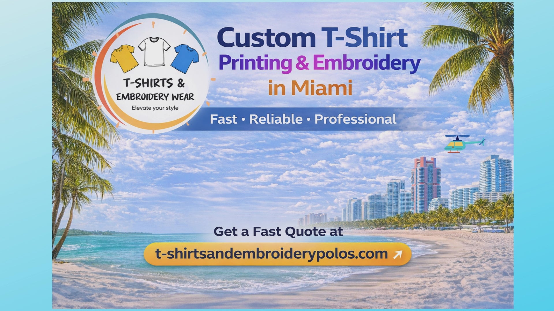 Based in Miami, Florida, we are your trusted partner for high-quality custom embroidery and screen printing services. We specialize in creating premium custom apparel for businesses, teams, events, and individuals who demand excellence.